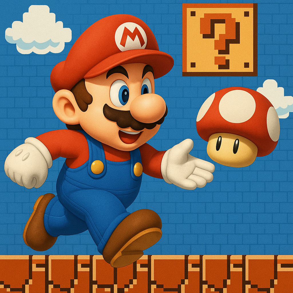 1980년대 초반 비디오 게임 시장은 ‘아타리 쇼크’로 불리는 대위기를 겪고 있었다. 게임의 품질이 낮아지고 소비자 신뢰가 급격히 무너진 상황에서, 닌텐도는 새로운 돌파구를 찾기 위해 다양한 시도를 했다. 바로 이 시기에 ‘키콩’이라는 게임이 탄생했는데, 여기서 공주를 구하기 위해 사다리를 오르는 무명의 캐릭터가 바로 오늘날 우리가 알고 있는 마리오의 전신이었다. 당시에는 단순히 ‘점프맨’이라 불렸지만, 곧 뉴욕에 거주하던 이탈리아계 집주인 ‘마리오 세갈레’의 이름을 따서 마리오라는 이름을 얻게 된다. 1985년, 닌텐도는 패미컴 전용 소프트웨어로 ‘슈퍼마리오 브라더스’를 출시했다. 이 작품은 단순한 액션 게임을 넘어선 혁신적인 게임 디자인을 선보였다. 횡스크롤 방식으로 끝없이 이어지는 스테이지, 점프와 파워업 아이템을 통한 다양한 변주, 그리고 누구나 직관적으로 이해할 수 있는 조작 체계는 비디오 게임의 새로운 기준을 세웠다. 특히 빨간 버섯을 먹으면 몸집이 커지고, 별을 먹으면 무적이 되는 시스템은 당시 아이들에게 강렬한 재미와 도전심을 불러일으켰다. 이러한 요소들은 지금까지도 마리오 시리즈의 핵심 정체성으로 이어지고 있다. 슈퍼마리오는 단순히 게임의 성공에 그치지 않았다. 캐릭터와 세계관, 음악, 그리고 독창적인 게임 구조는 곧 닌텐도의 상징으로 자리 잡았다. 마리오와 루이지 형제는 가족 친화적인 이미지와 더불어 누구나 즐길 수 있는 게임성 덕분에, 전 세계적으로 인지도를 확보하며 문화적 아이콘으로 성장했다. 당시 비디오 게임 산업을 다시 일으켜 세운 일등 공신으로 평가되는 것도 바로 이러한 이유 때문이다.