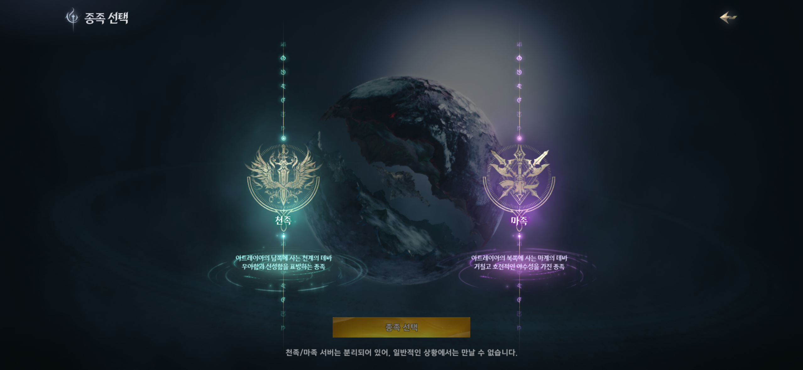 1. 천족·마족 선택 및 캐릭터 생성 과정